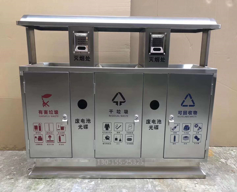 不銹鋼分類垃圾桶采用優質加厚不銹鋼制造,具有一定的防腐蝕功能,不易生銹,使用壽命更長,做工精致,外觀大方,適合各種戶外場所。